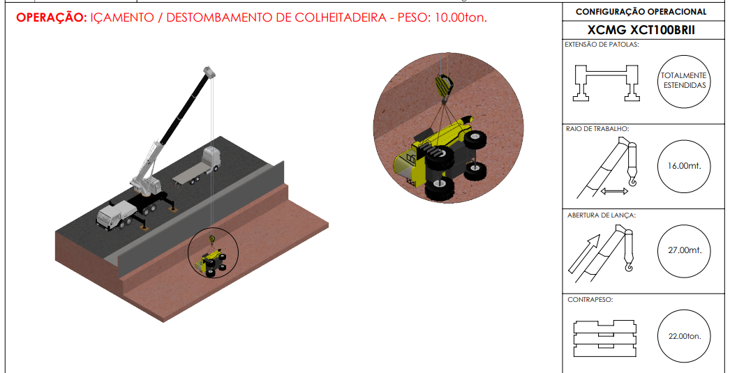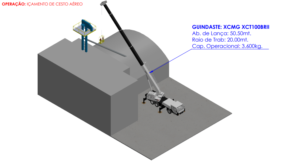 Alguns registros de içamento, transporte e posicionamento.